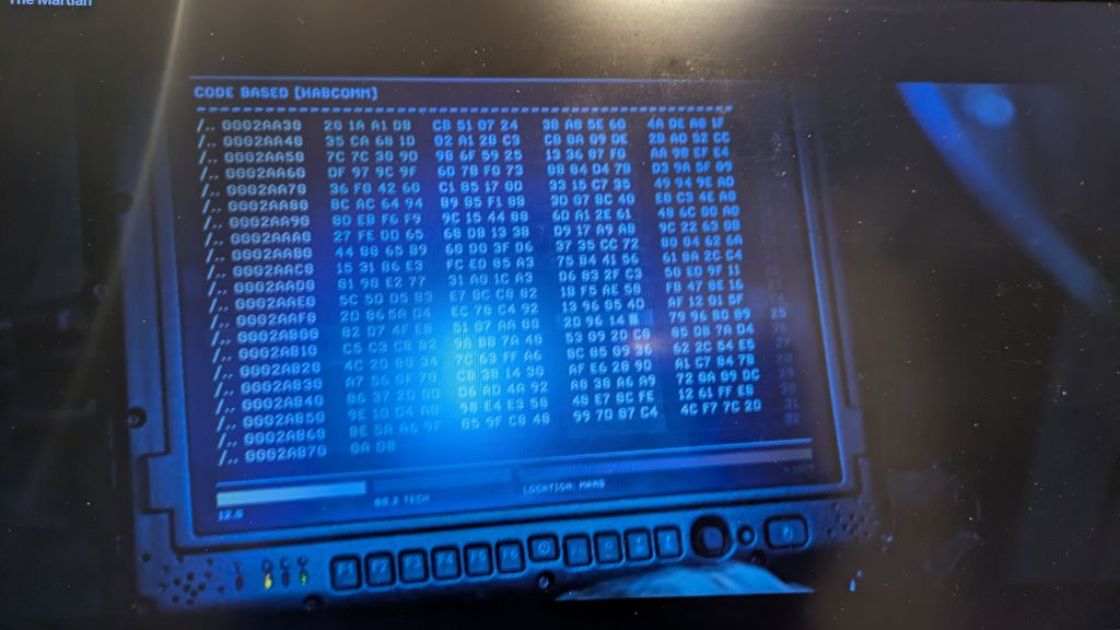- This is a prop screen from The Martian (HABCOMM) meant to look “code-y,” not an actual dump of a binary.