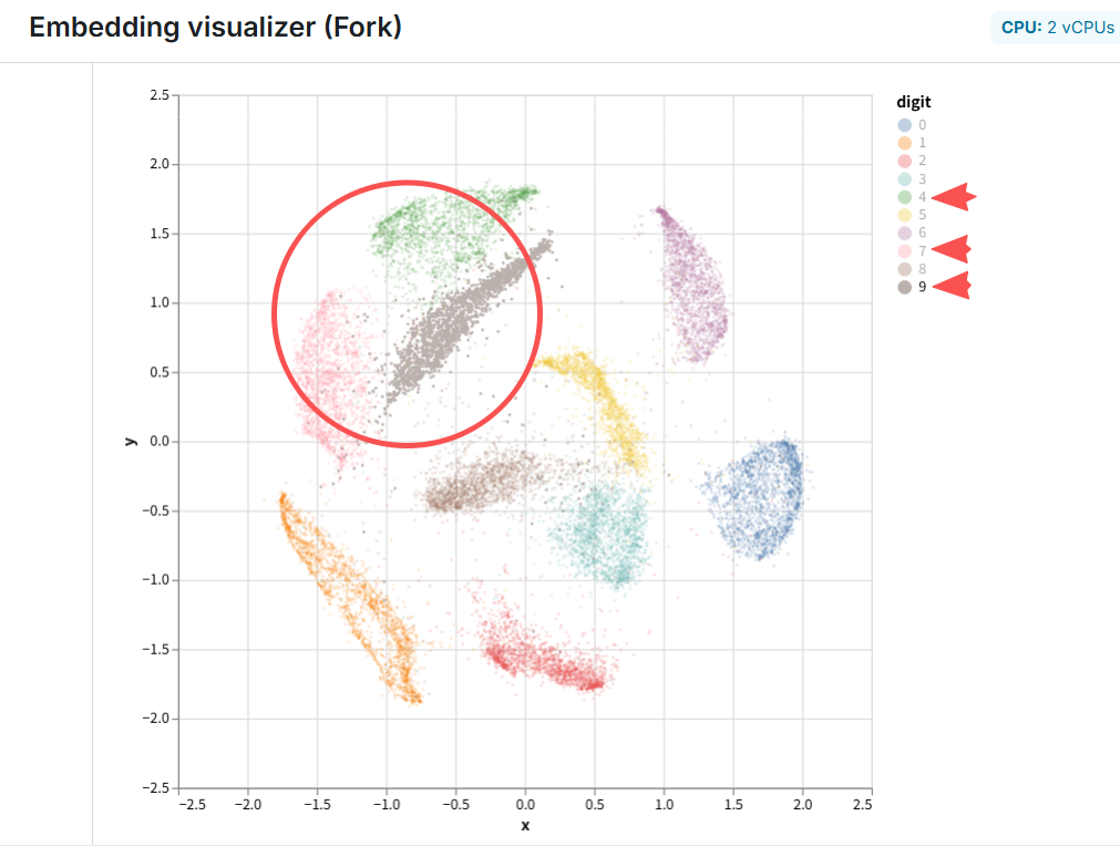 一个Embedding visualizer demoTech | AI AI时代老码农 | 作者: NullThought | 2026-02-12 | 发表评论 marimo上的一个Embedding visualizer(嵌入可视化) demo,演示手写数字识别的嵌入空间特征可视化。 数字4、7、9形状相对近似,故其嵌入特征值离得较近。 手写数字识别嵌入空间特征可视化。 相关文章: 面向ChatGPT编程 显示振动信号不同统计特征的一张图 >Happy 1024 Day_, 程序员节快乐 曾几何时,软件吞噬世界。现在,AI正在吞噬软件 Python成为GitHub最受欢迎的编程语言 Google在软件工程中AI应用的进展和未来方向 AI辅助编程,需求尽量定义清楚 AlphaEvolve:具备发现新知识、优化系统、改进算法能力的自动化代码进化代理系统 电路设计工具软件KiCad对接AI的MCP Server 关于AI辅助编程